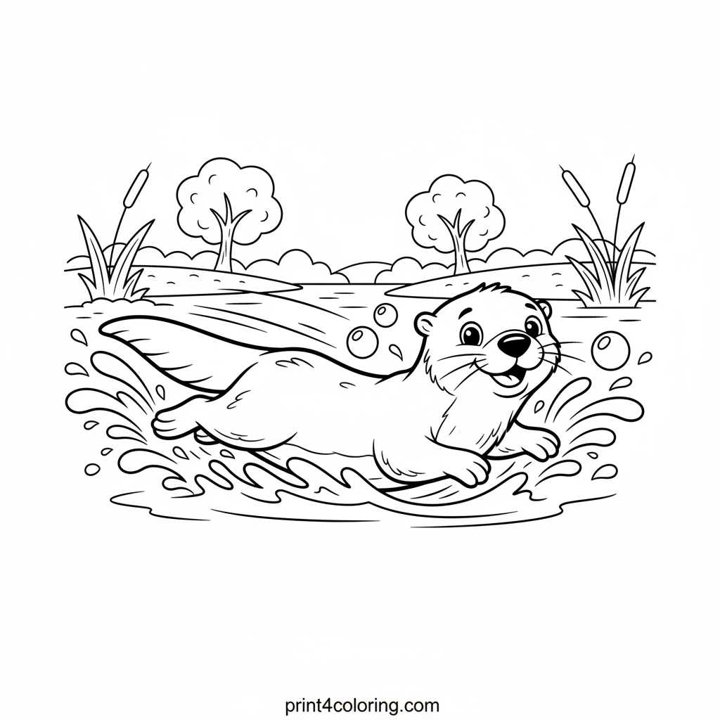 Dive into the fun with this speedy otter! Watch as our playful friend races through crystal-clear water, a big smile on its face, leaving a trail of happy bubbles. This exciting scene captures the joy of a fast-swimming otter, perfect for young artists to bring to life with vibrant colors.