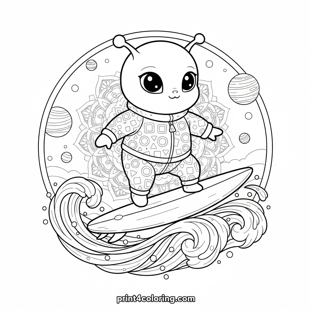 Stardust Surfer's Galactic Wave Adventure Coloring Page