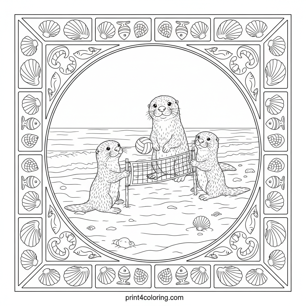 Sunny Seaside Otter Volleyball Practice Coloring Page