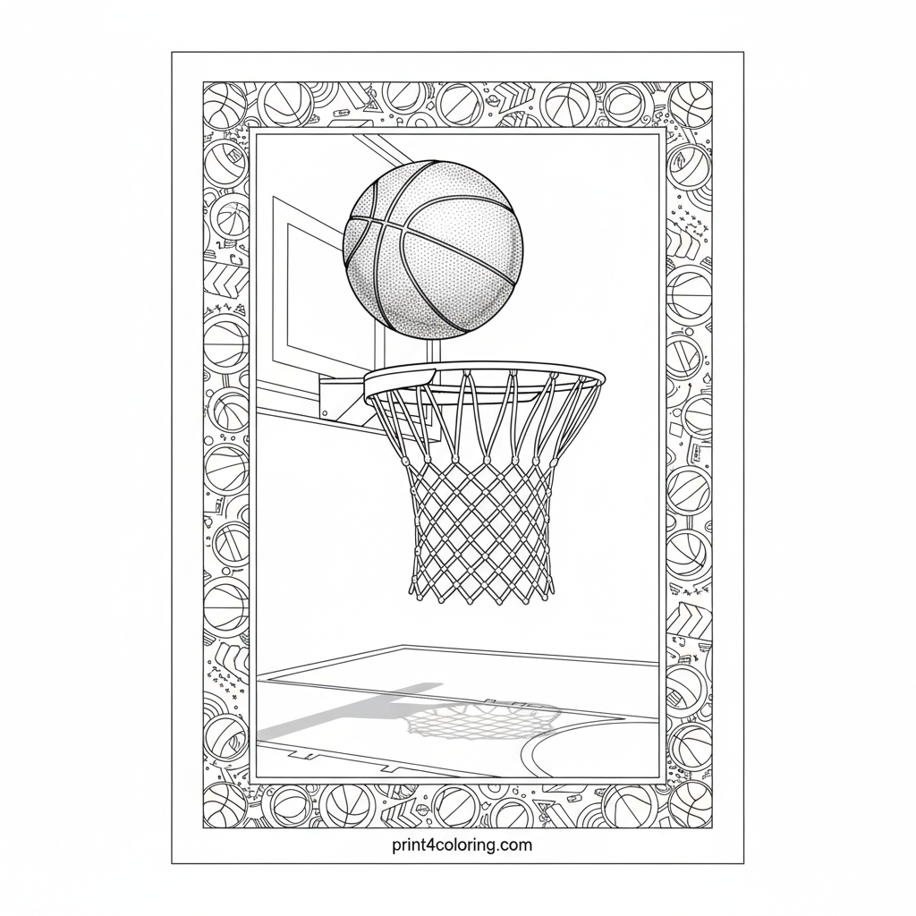 The Perfect Swish: Basketball Arc Coloring Page