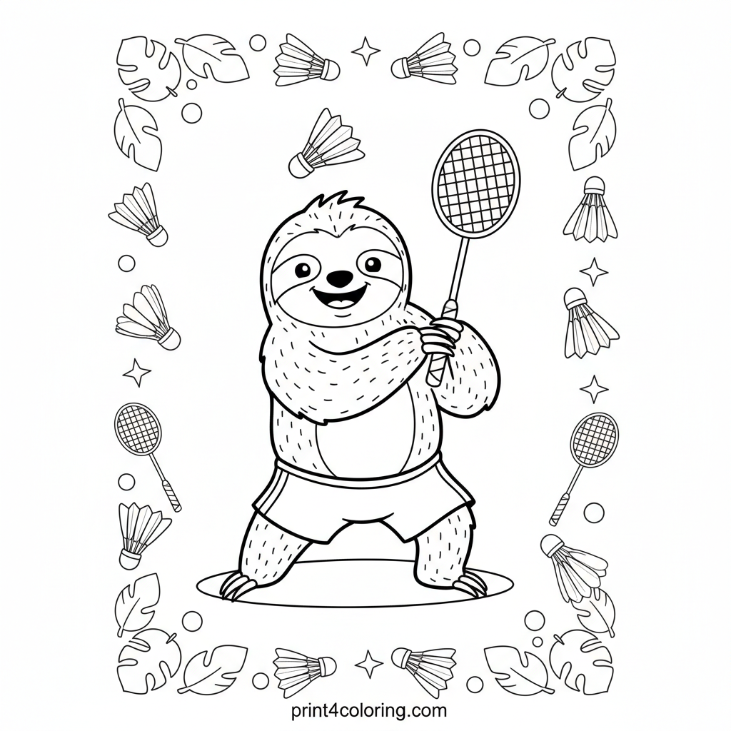 Join our adorable, slow-moving sloth as it attempts a hilarious shuttlecock serve! With a big grin and racket held tight in both hands, this silly sloth is ready for a super slow sports day. Color in the funny, clumsy action and the playful pattern frame surrounding our determined athlete. Get ready for some giggles!