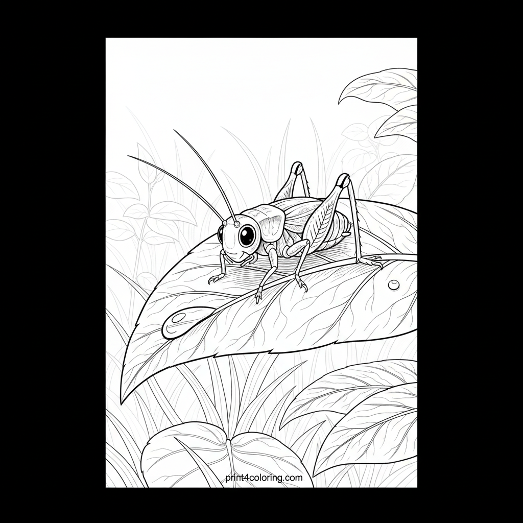 #cricket#insect#nature#leaf#dewdrop#baby-animal#macro#detailed#coloring-page#printable