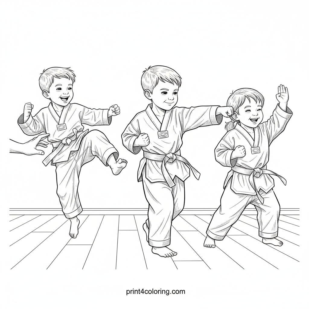 - 3✨ Dojang Details - Color the dojang (training hall) with clean, bright colors for the floor and walls, perhaps adding subtle textures or a faint pattern to the mats.
