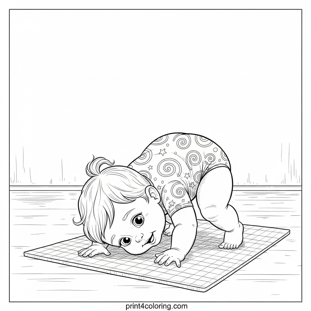 Watch our adorable chubby-cheeked toddler mid-roll, eyes sparkling with focus and a sweet smile! Imagine the joy of their first gymnastics move on a soft, textured mat. Add vibrant colors to their patterned leotard and bring this heartwarming scene to life!