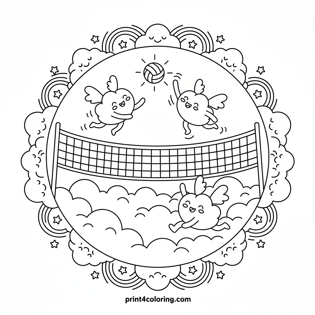 Whimsical Cloud Kingdom Volleyball Coloring Page