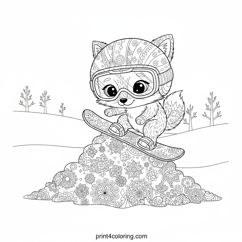 Wobbly Arctic Fox's First Snowboard Adventure Coloring Page