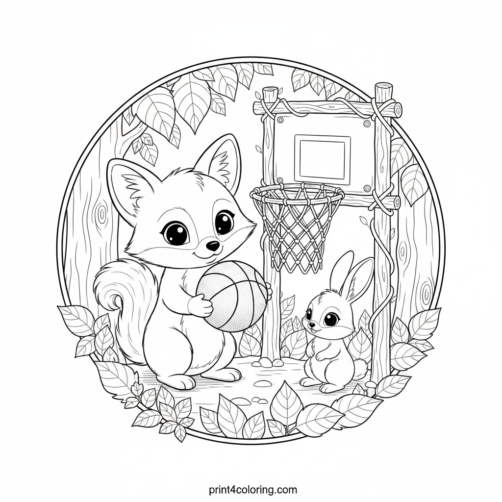 Woodland Hoops: Forest Friends' Game Day Prep Coloring Page