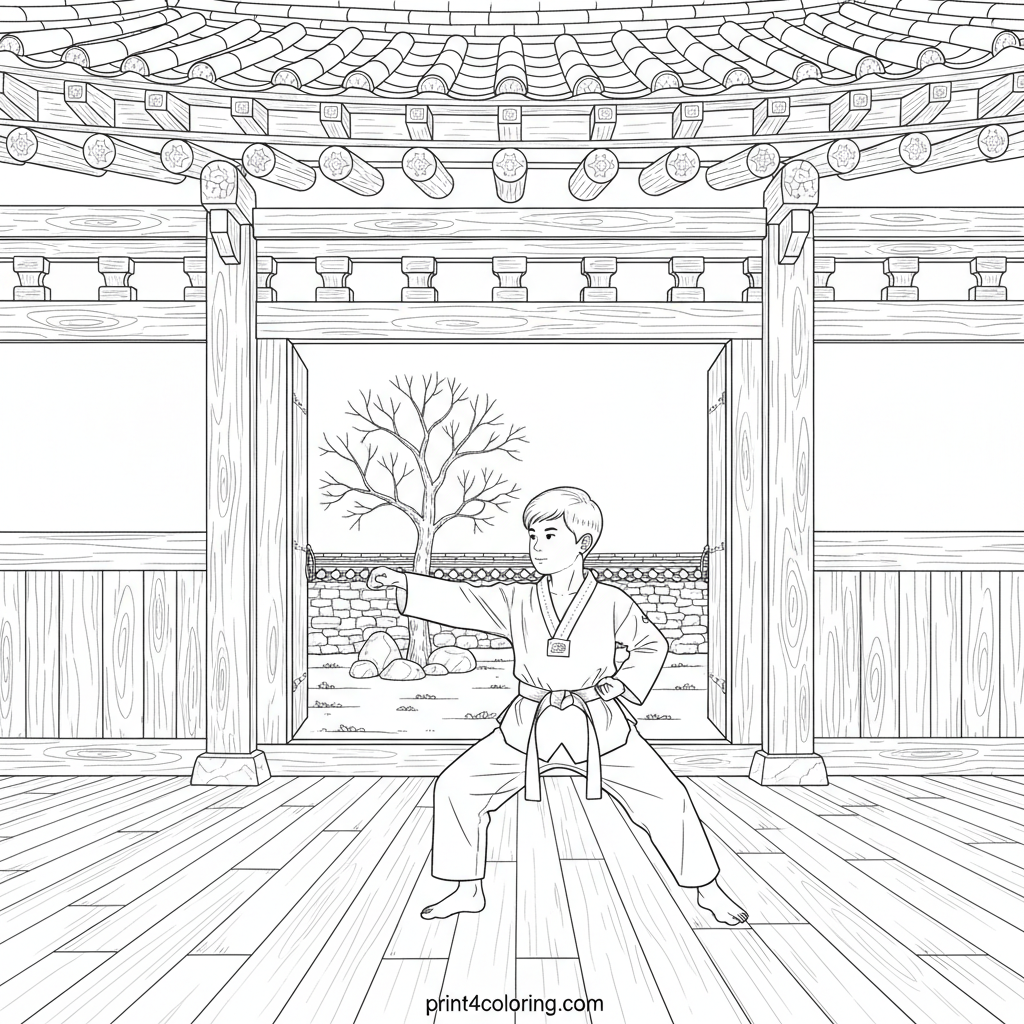 #taekwondo#martial-arts#dojo#korean-culture#child#discipline#ancient#coloring-page#printable
