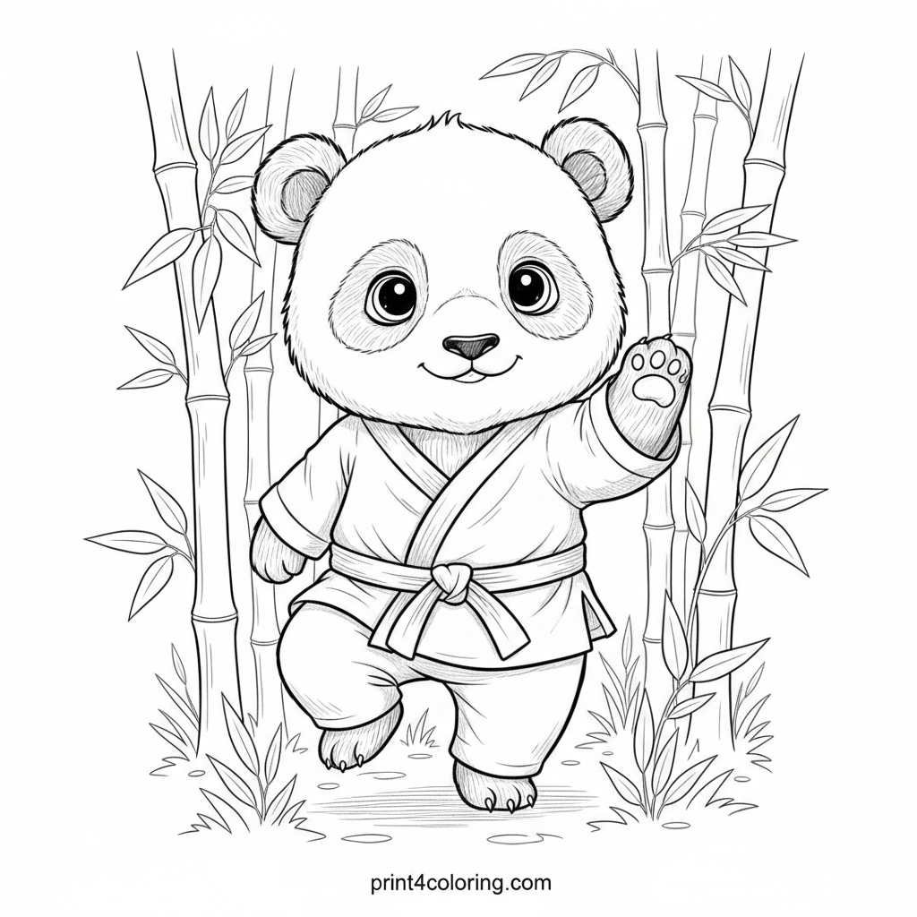 #baby-panda#karate#bamboo-forest#martial-arts#cute-animals#balance#peaceful#coloring-page#printable