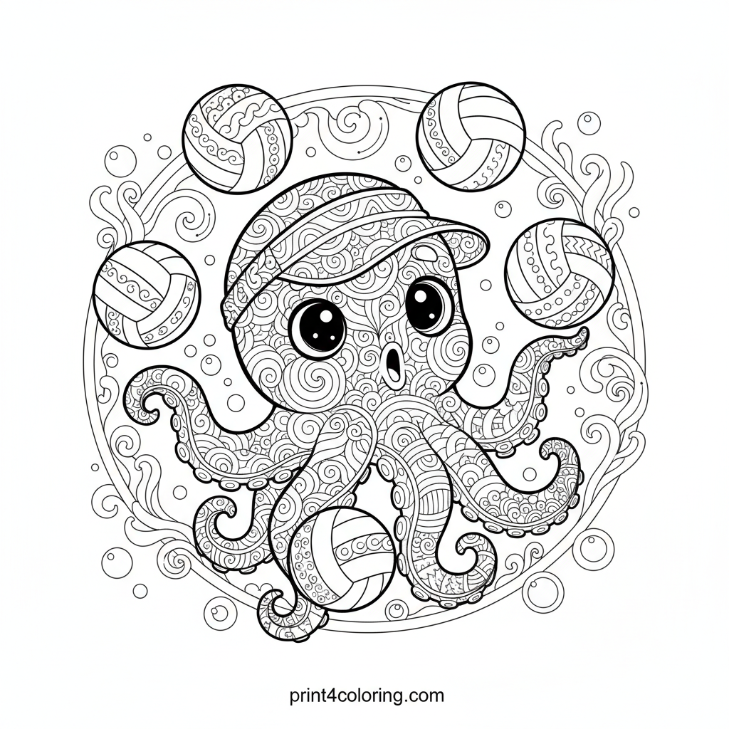 Zentangle Octopus's Epic Eight-Arm Volleyball Serve Coloring Page