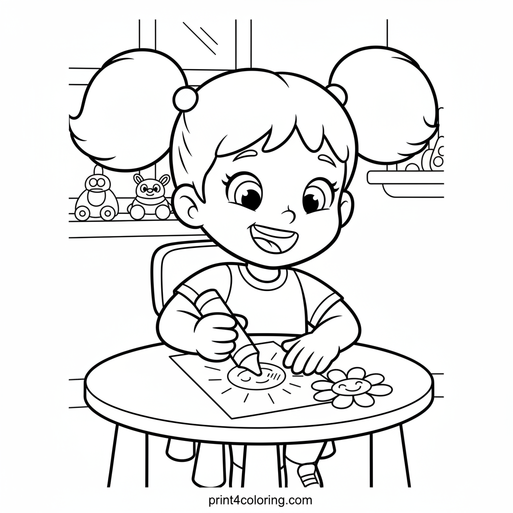 - 3✨ Tabletop Details - Don't forget the small table Bubbles is sitting at! You can color it a warm brown, a playful red, or any color that makes her art space feel cozy and inviting.