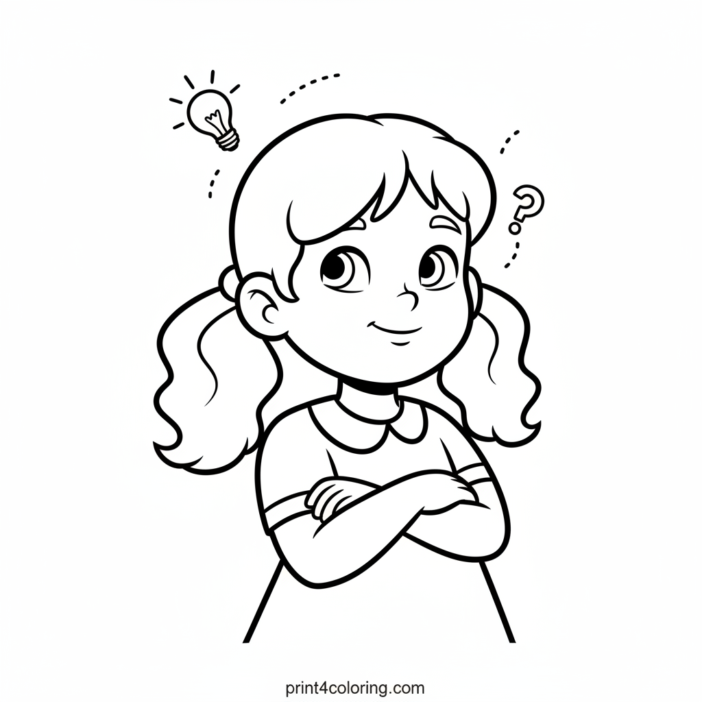 #girl#portrait#thinking#idea#children#happy#coloring-page#printable