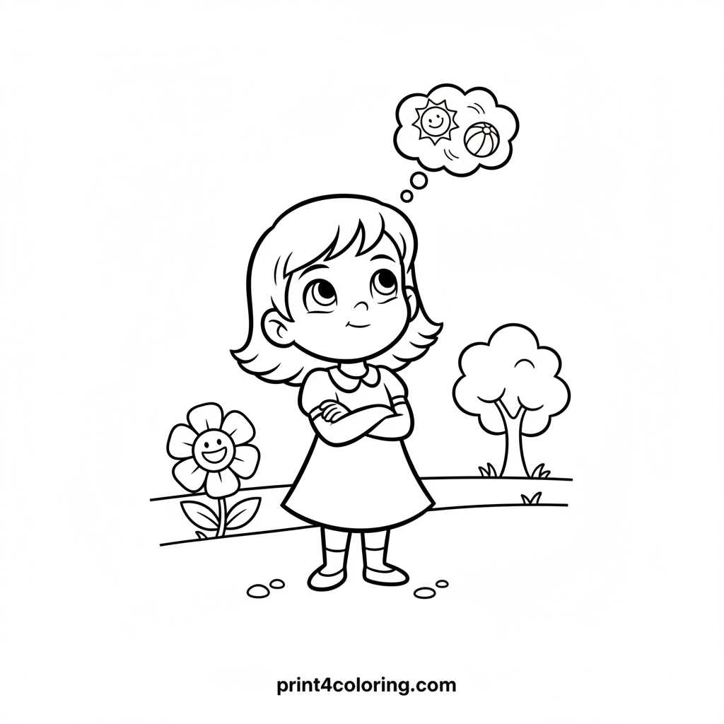 #girl#thinking#game#idea#children#play#imagination#coloring-page#printable