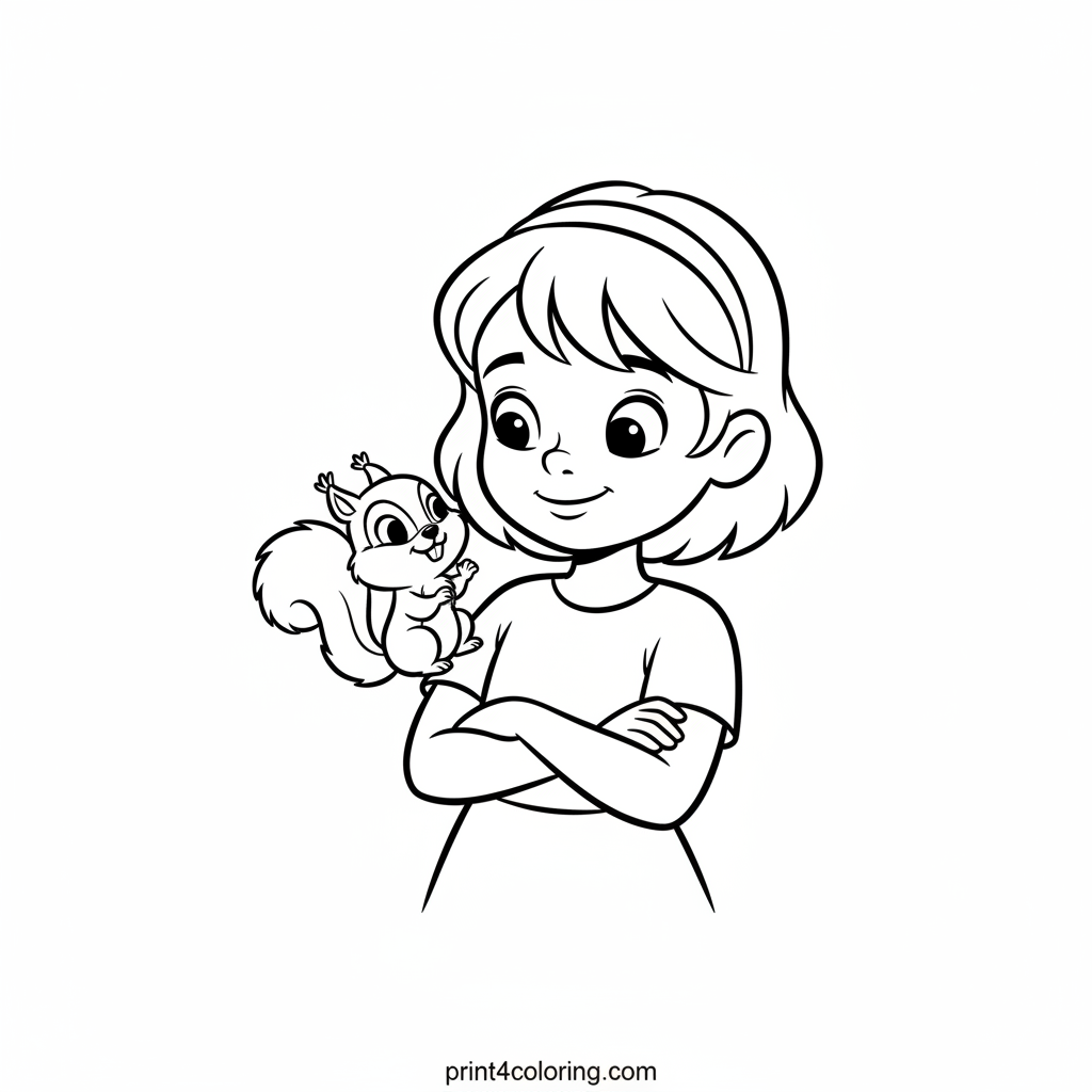 Meet Buttercup, the kindest friend in the forest! She stands proudly in her green dress, arms crossed, next to a tiny, happy squirrel. Imagine the wonderful adventures they share together! This heartwarming scene is perfect for little artists to bring their friendship to life with bright, happy colors.