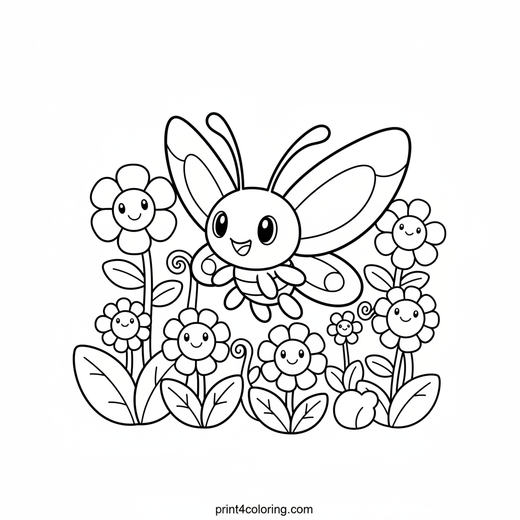 Join a beautiful Butterfree as it gracefully flutters through an enchanting garden! Discover huge, sparkling flowers in every color imaginable, waiting for your creative touch. Imagine the sweet scents and gentle breezes as you bring this magical scene to life. A delightful adventure awaits your crayons!