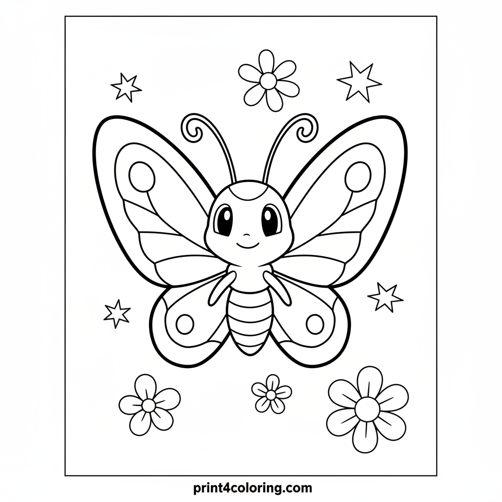 #butterfree#pokemon#magical-garden#flowers#butterfly#fantasy#easy-coloring#coloring-page#printable
