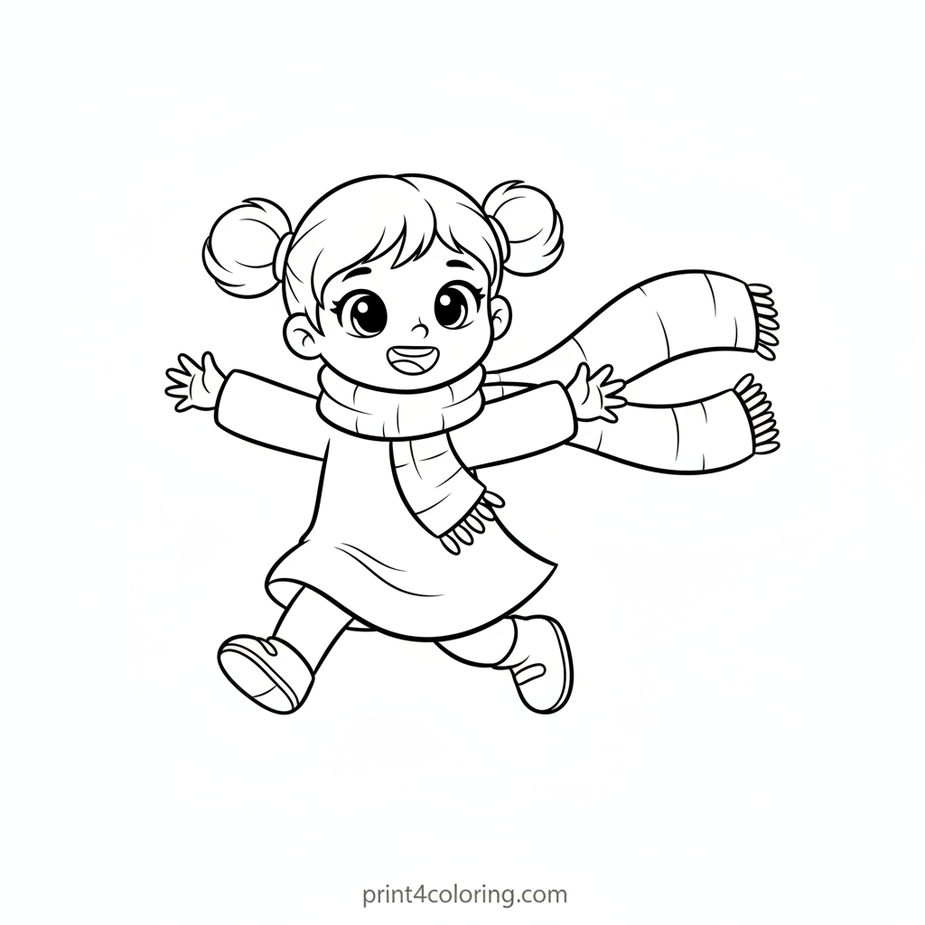 #daphne#girl#scarf#playful#chase#cozy#fun#outdoor#coloring-page#printable