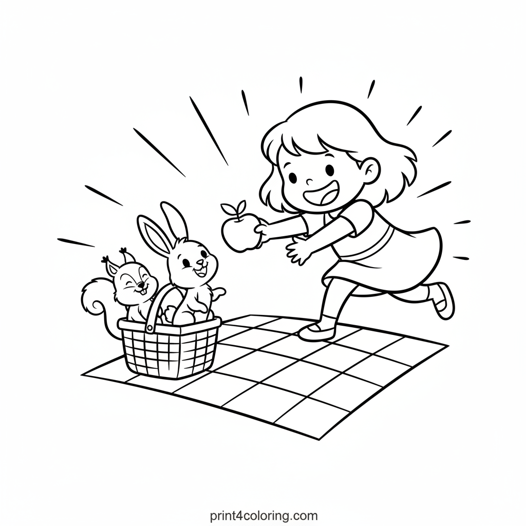 #daphne#picnic#woodland#squirrel#bunny#friends#pretend-play#girls#coloring-page#printable