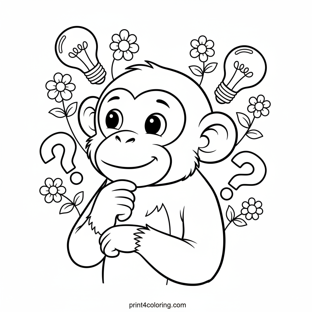 Dive into a world of imagination with this clever monkey tending to his extraordinary garden! Giant glowing lightbulbs and sprouting question marks fill the scene, where vibrant 'ideas' bloom like the most unique flowers. Grab your colors and bring this magical realm of creativity to life, inspiring your own big ideas!