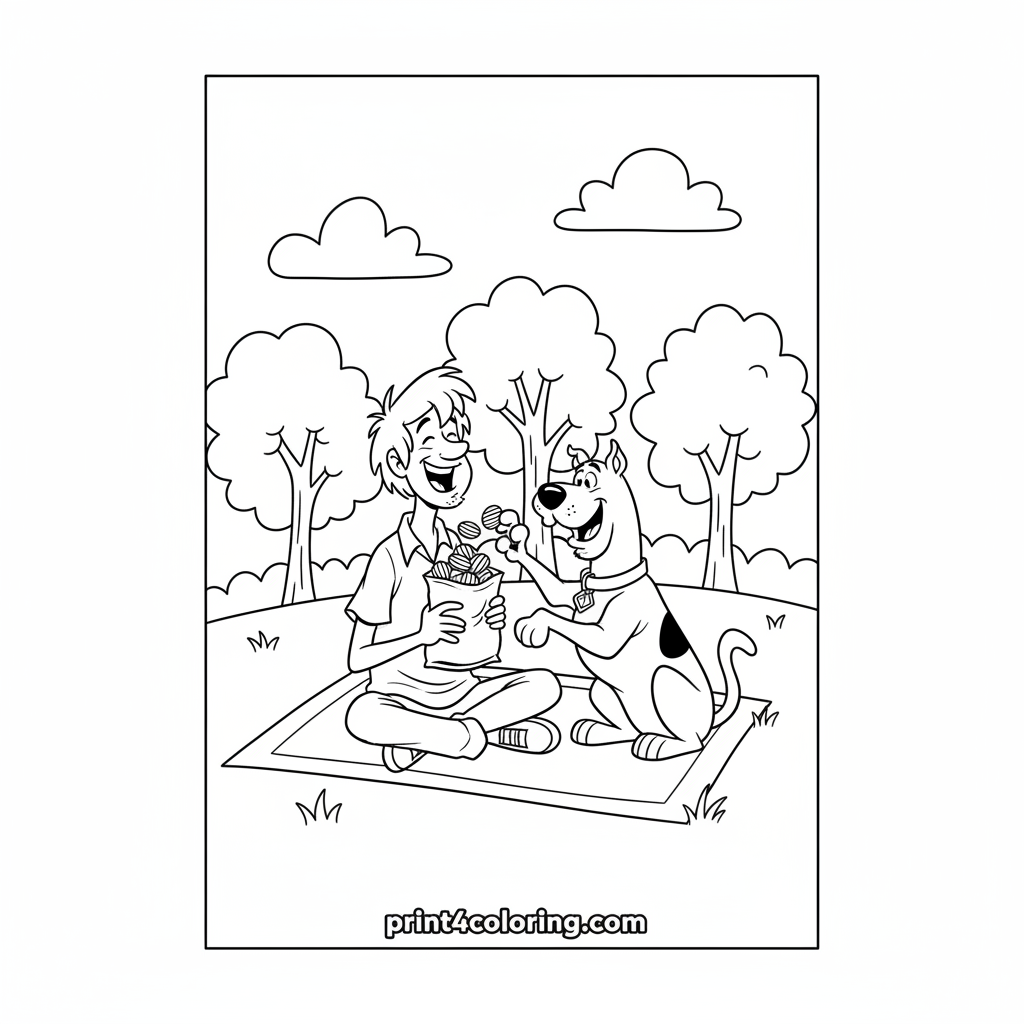 Picnic Fun with Shaggy and Scooby Coloring Page