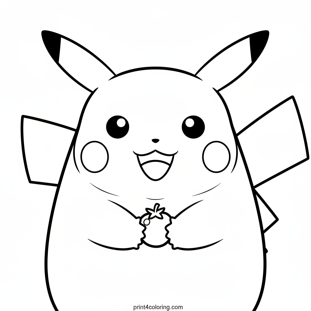 Get ready to color a very happy Pikachu! This adorable close-up shows Pikachu with big, friendly eyes and a perfectly round shape, sitting cheerfully. Our favorite electric friend is holding a small, delicious berry, ready for a yummy snack. Bring this sweet moment to life with your brightest colors and make Pikachu's day even happier!