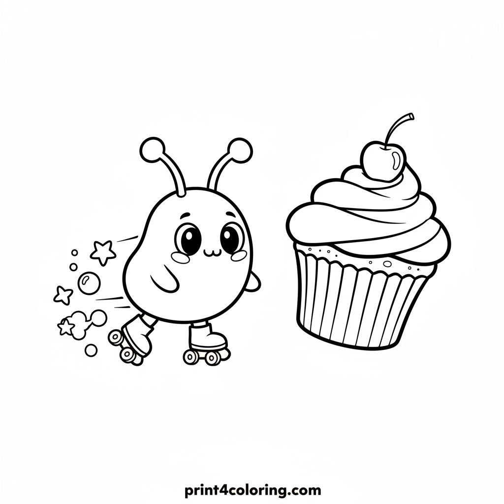 Join tiny Plankton on an exciting adventure! Watch him zoom super fast on a little roller skate, racing towards a giant, yummy cupcake. Follow the happy trail of sparkling magic he leaves behind. This cheerful scene is full of delicious fun and ready for you to add your brightest colors!