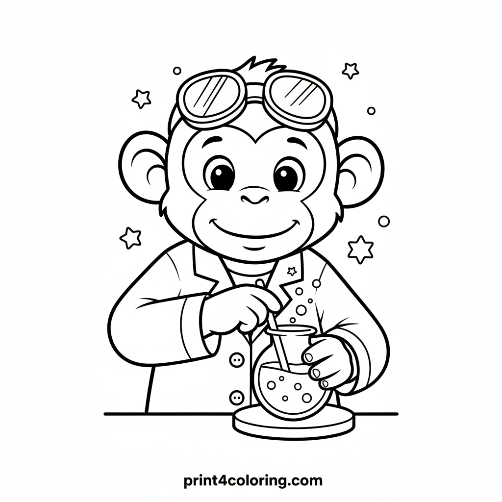 #monkey#scientist#experiment#potion#laboratory#cute#animal#science#goggles#magic#stars#coloring-page#printable