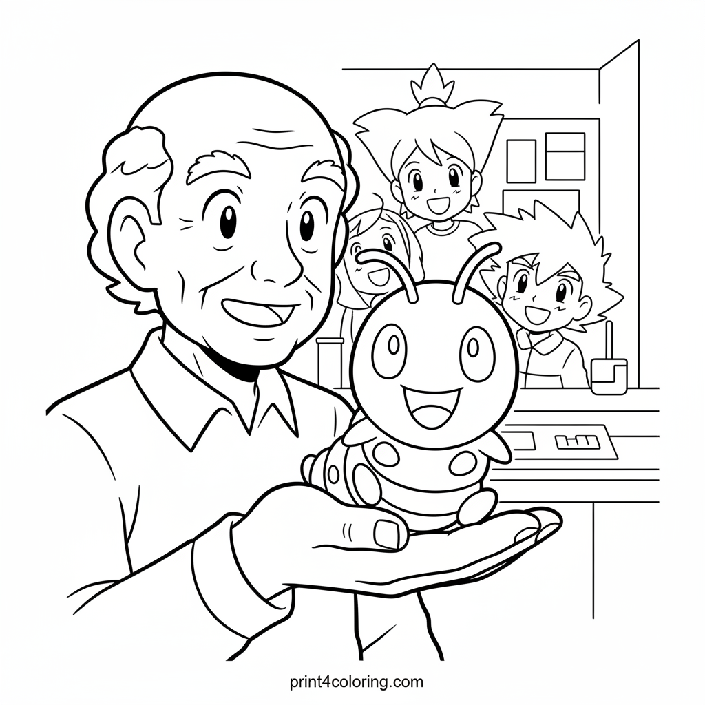 #pokemon#caterpie#professor-oak#friends#anime#coloring-page#printable