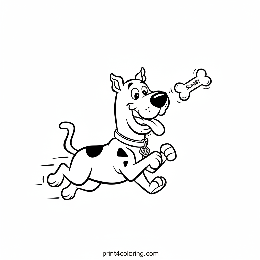 Join Scooby-Doo on a super-speedy dash! His legs are a happy blur as he excitedly chases a bouncing Scooby Snack. With his tongue playfully out and a big, energetic grin, this beloved dog is ready for his favorite treat. Grab your colors and bring Scooby's joyful chase to life!