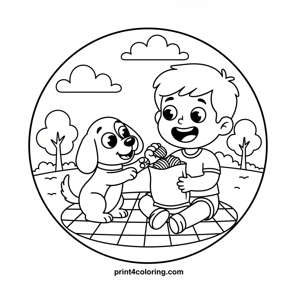 Join Shaggy and Scooby-Doo for a hilariously happy picnic! Shaggy enjoys a giant bag of chips on a cozy blanket, while mischievous Scooby tries to sneak a tasty snack. Color their joyful expressions and the yummy scene as they share a moment of friendship and fun under the sun. A perfect day for snacks and smiles!