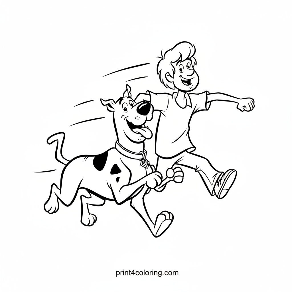 Join Scooby-Doo and Shaggy as they race towards adventure, or maybe a giant Scooby Snack! Their happy faces and blurry legs show they're moving super fast. Imagine what delicious surprise awaits them at the finish line. Get ready to add vibrant colors to their exciting dash!