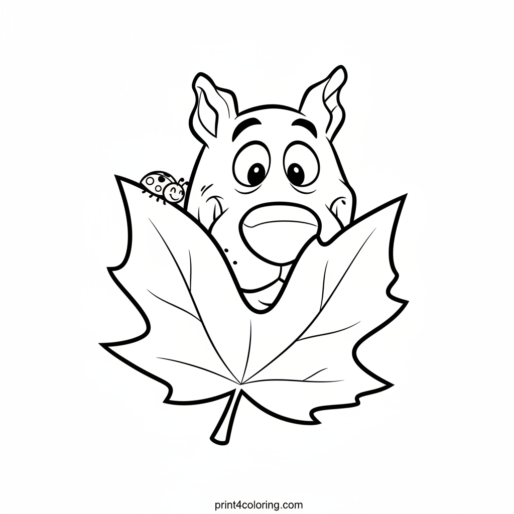 Join Scooby-Doo for a playful surprise! Our favorite Great Dane is peeking out from behind a big, colorful autumn leaf, with his big, friendly eyes wide open. A tiny, smiling ladybug is crawling nearby. Get ready to add vibrant colors to this fun fall scene and bring Scooby and his little friend to life!
