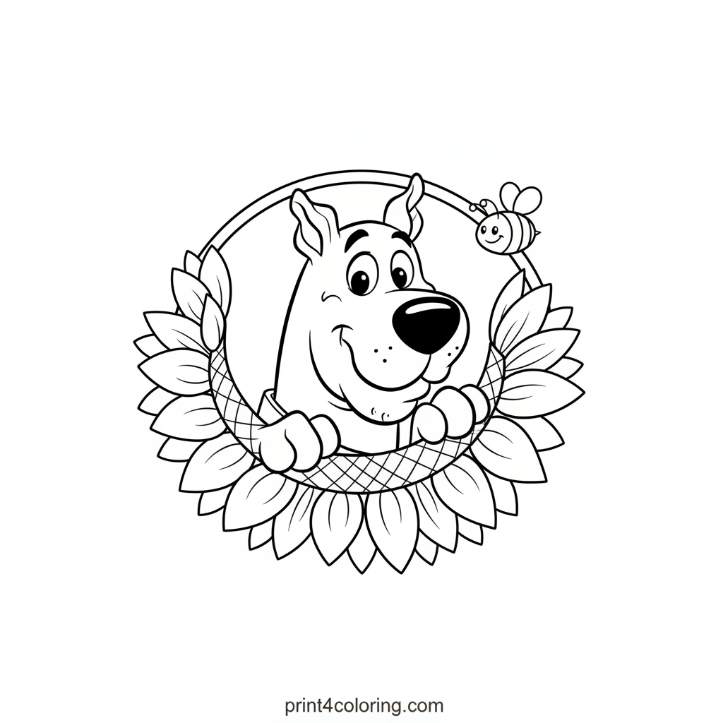 #scooby-doo#sunflower#dog#cartoon#cute#bee#mystery-gang#easy-coloring#coloring-page#printable