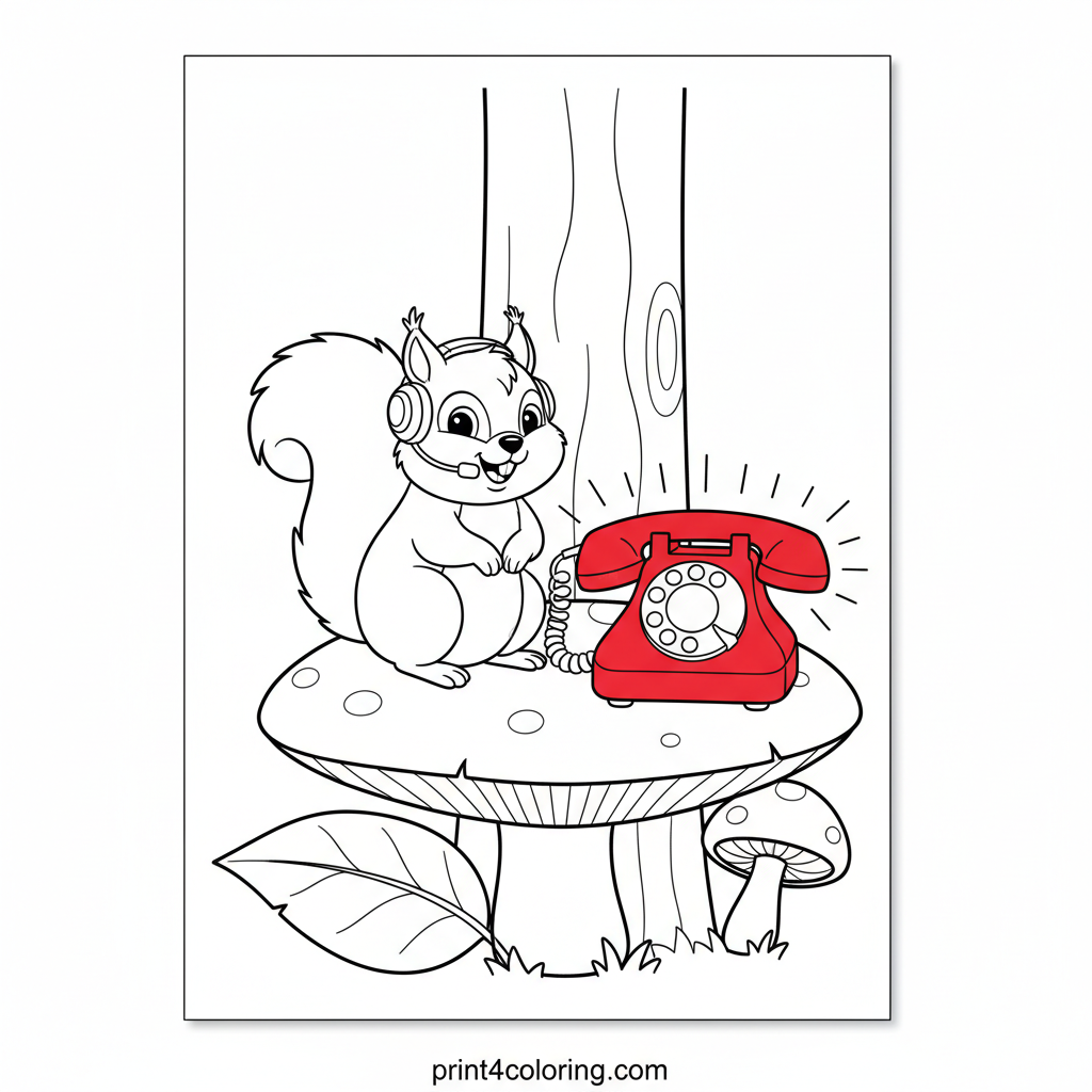 Meet Squeaky, the friendliest squirrel on the hotline! With a tiny headset on and a big, bright red phone glowing beside him, Squeaky is ready to lend an ear and offer help to anyone who calls. Grab your crayons and bring this adorable scene to life with vibrant colors!