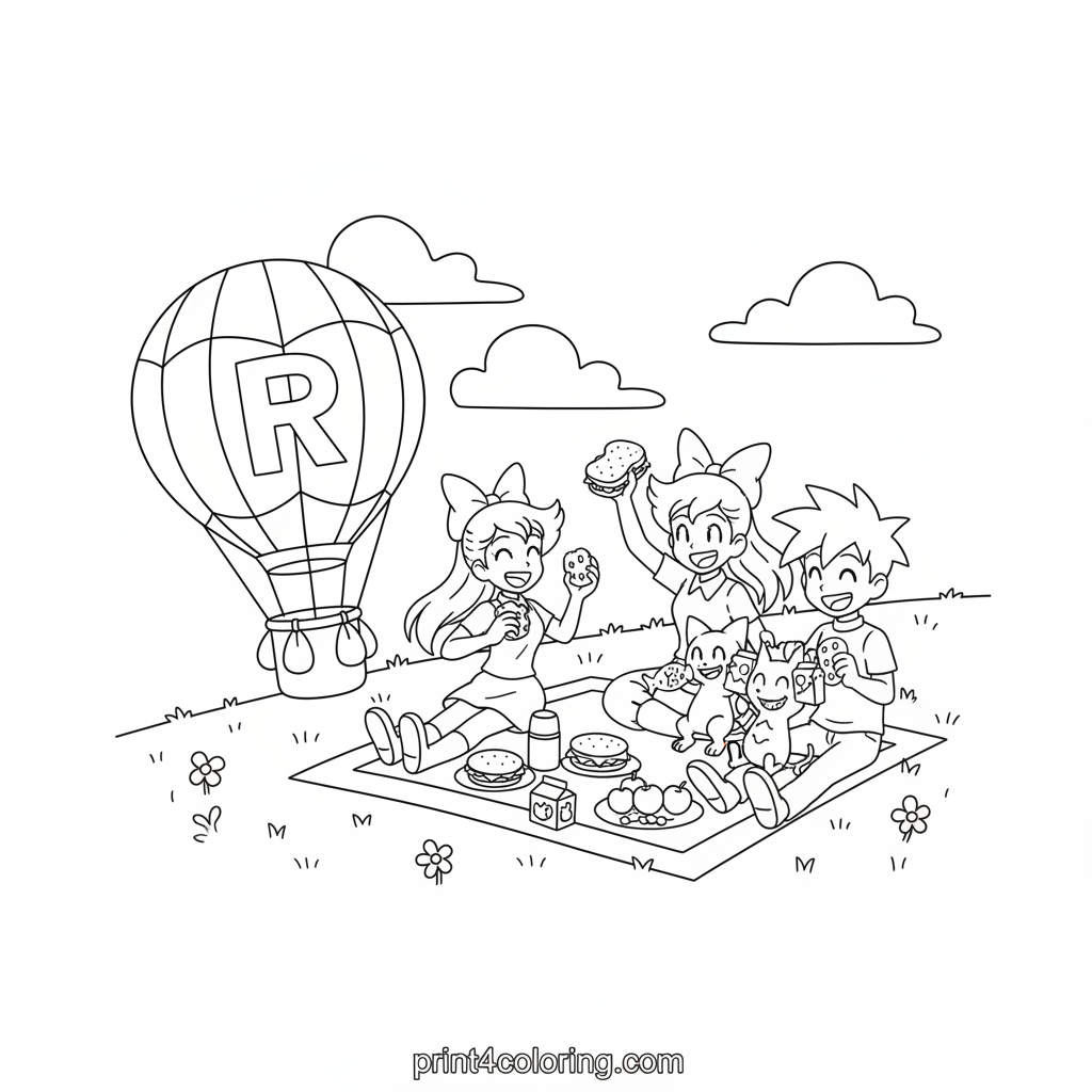 Team Rocket's Sunny Picnic Adventure Coloring Page
