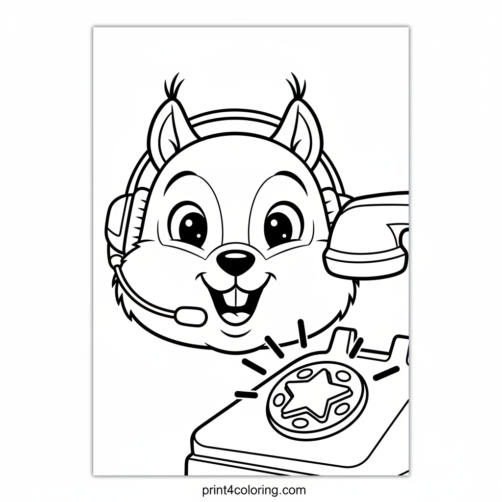 Meet our adorable Little Helper Squirrel, ready to take your call! This friendly, round-faced squirrel wears a tiny headset, sitting beside a big, bright red phone with a special star button. The phone glows gently, and the squirrel looks eager to assist. Grab your crayons and bring this helpful scene to life!