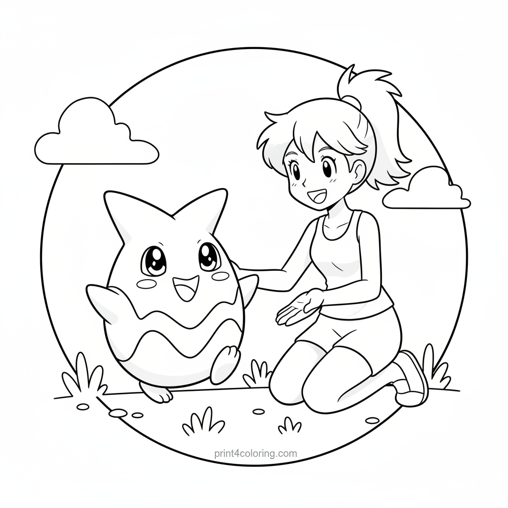 - 4🌈 Happy Expressions - Focus on Togepi's big, happy eyes and Misty's kind, encouraging smile to bring out the joy in this heartwarming scene.