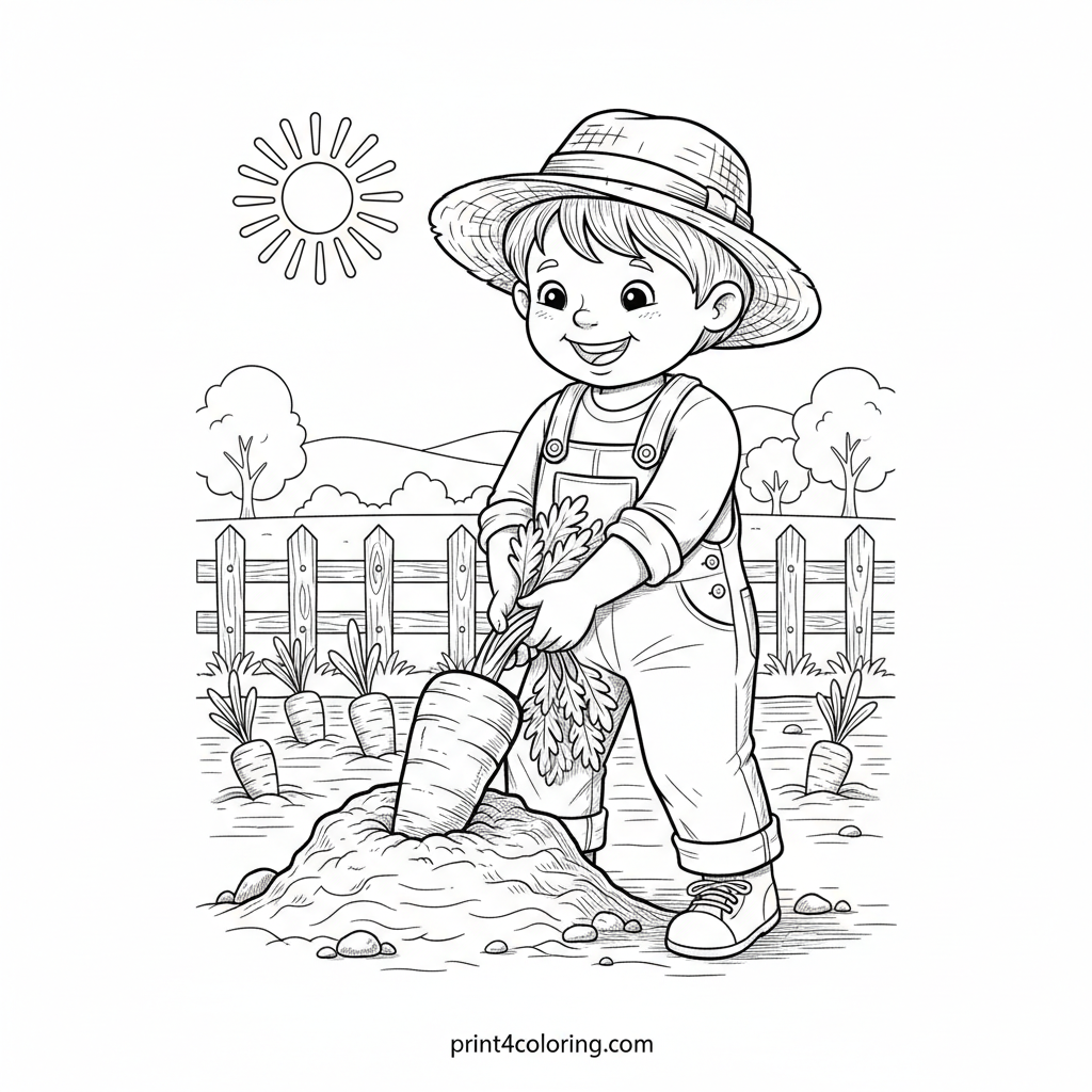 - 3✨ Sunlight Glow - Imagine where the sun is brightest! Use lighter colors or even leave small areas uncolored on the farmer's hat, shoulders, or the top of the carrot to create a brilliant sunlit effect.