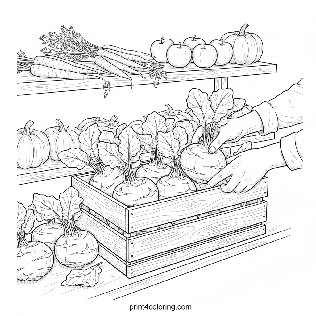 Bountiful Kohlrabi Harvest at the Market Coloring Page