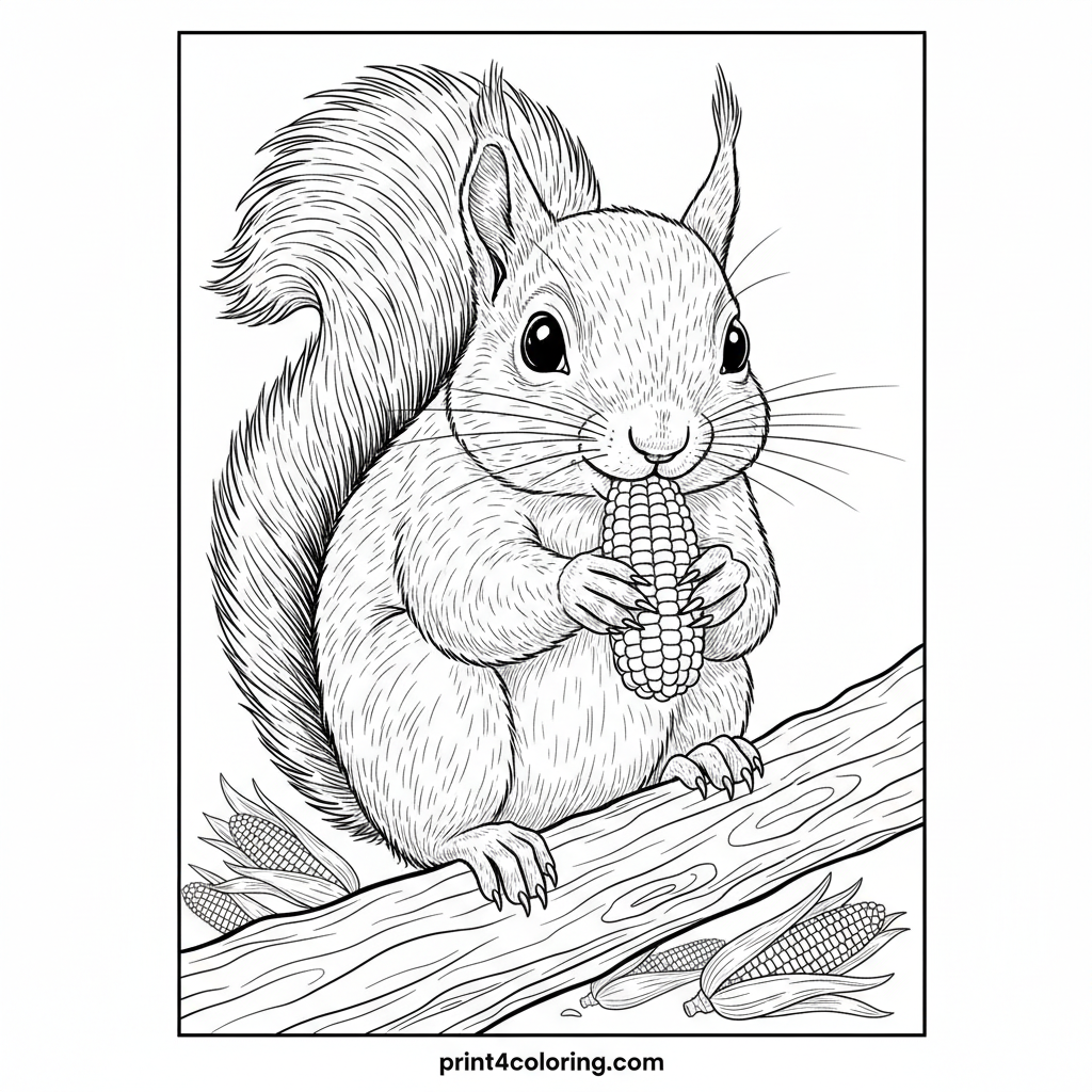 A Cheerful Squirrel's Cornfield Feast Coloring Page