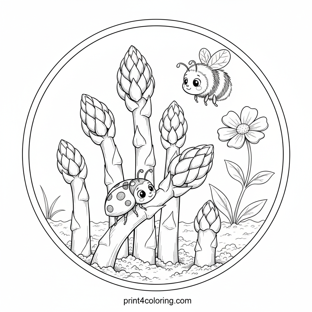 Cozy Asparagus Garden: Sprouting Life Coloring Page