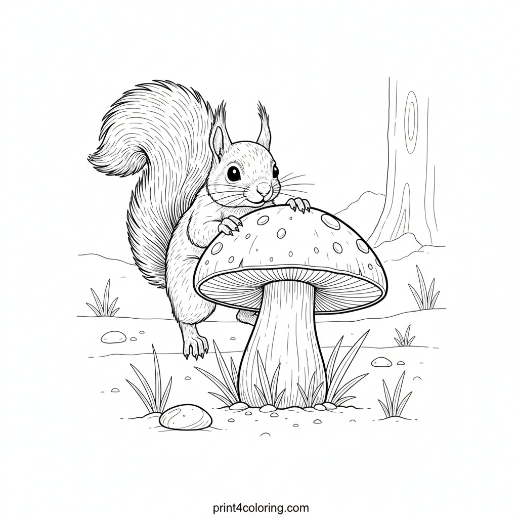 Curious Squirrel's Giant Mushroom Discovery Coloring Page