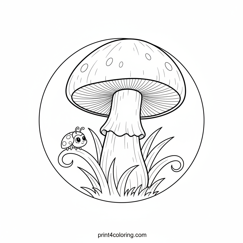 Dive into the magical world of the forest floor with this detailed botanical study! Explore the delicate gills, textured cap, and sturdy stem of a beautiful woodland mushroom, drawn with intricate lines perfect for mindful coloring. Imagine it nestled amongst soft moss and fallen leaves, ready for your artistic touch.