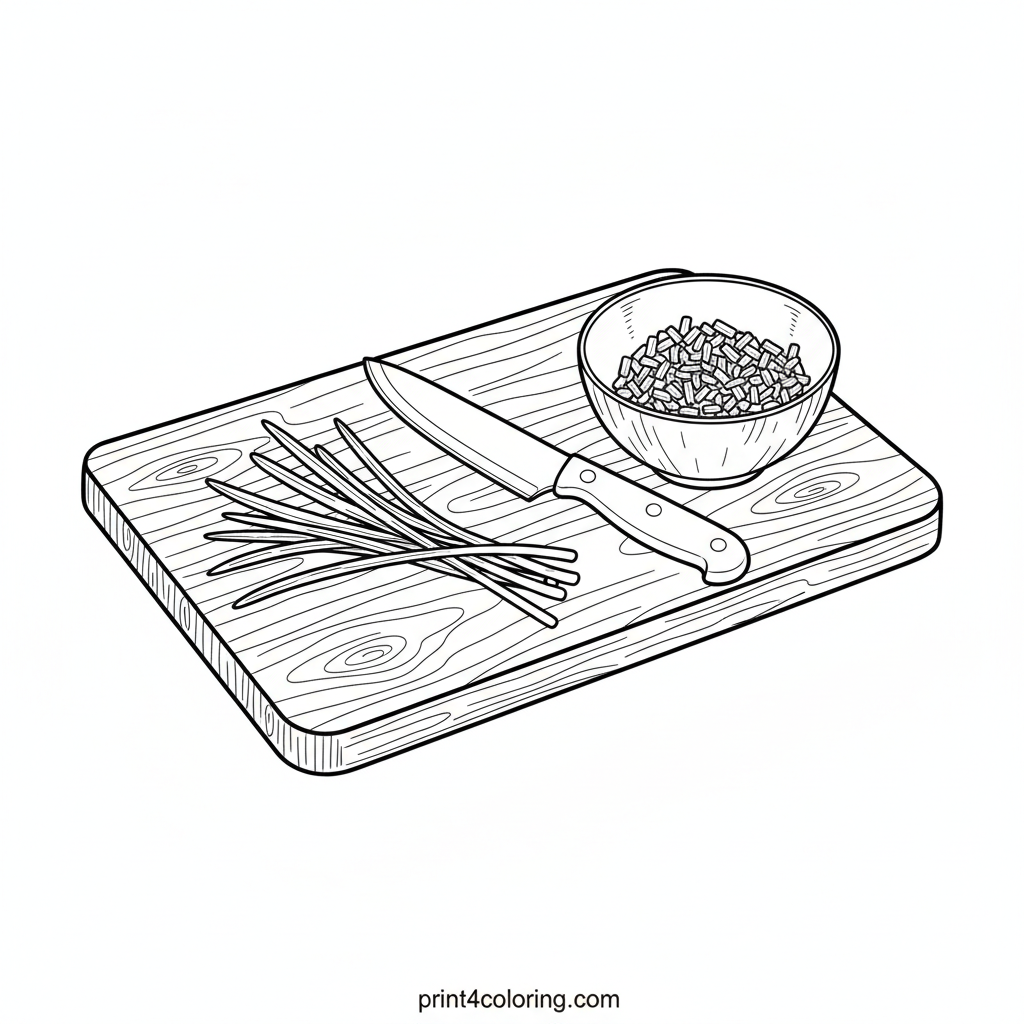 - 4🌈 Shadow Play - Look for subtle shadows created by the chives, knife, and bowl. Adding soft grey or darker versions of the surrounding colors in these areas will make your drawing pop and feel more three-dimensional.