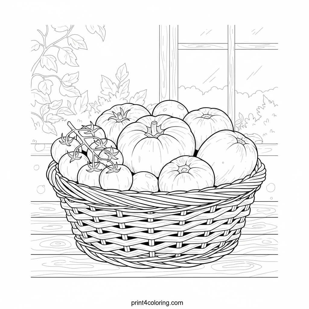 #tomatoes#garden#harvest#still-life#basket#vegetables#nature#coloring-page#printable