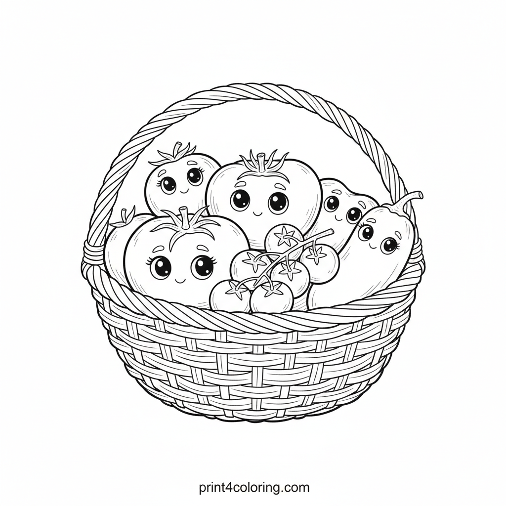 #tomatoes#garden#basket#still-life#vegetables#harvest#food#healthy#coloring-page#printable