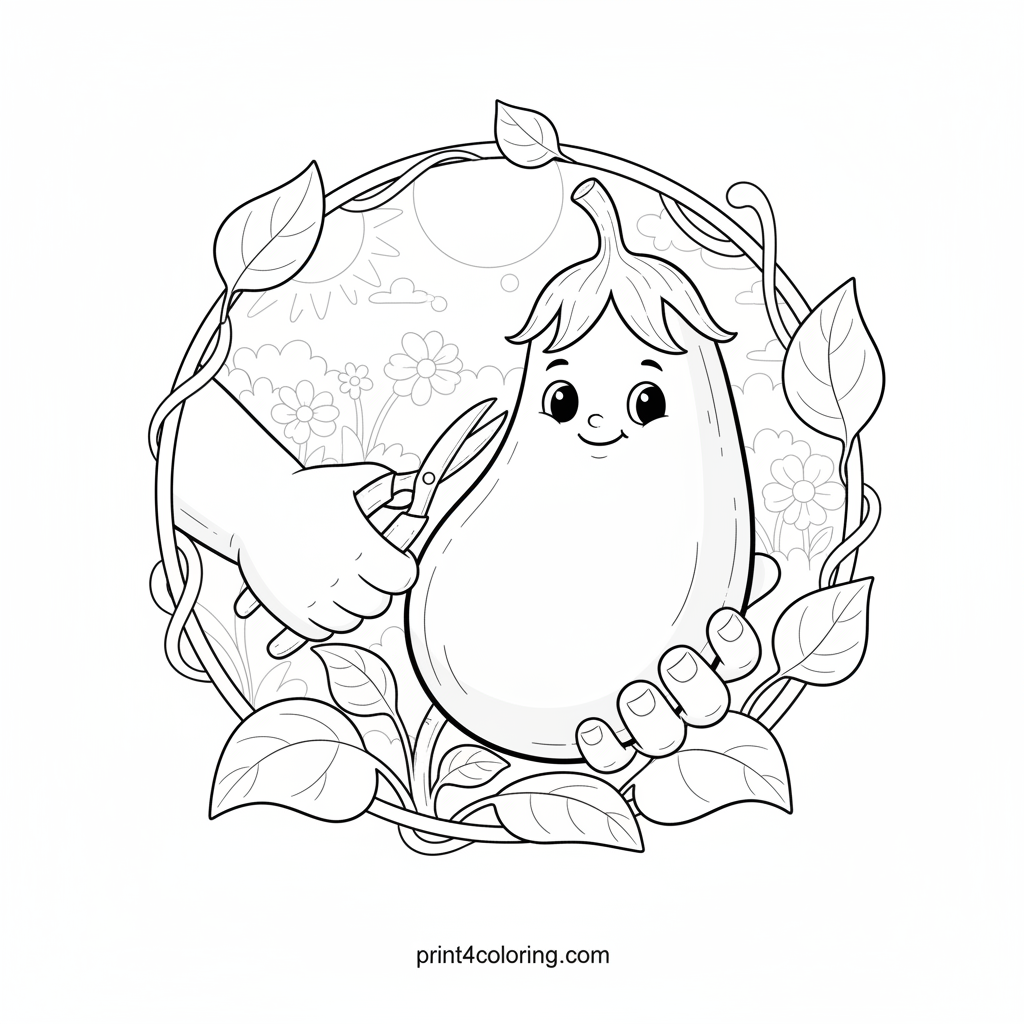 Gentle Eggplant Harvest in the Sunny Garden Coloring Page