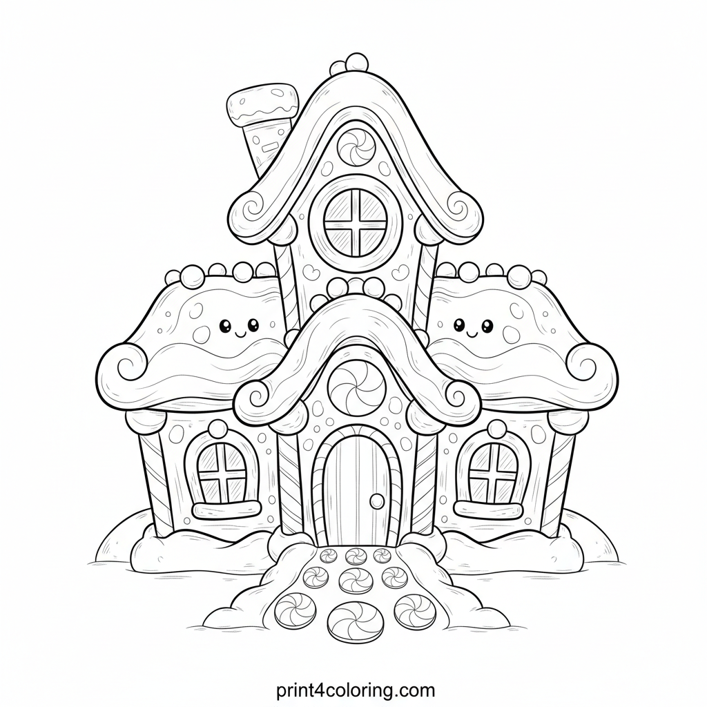 Grand Gingerbread Mansion Blueprint Coloring Page