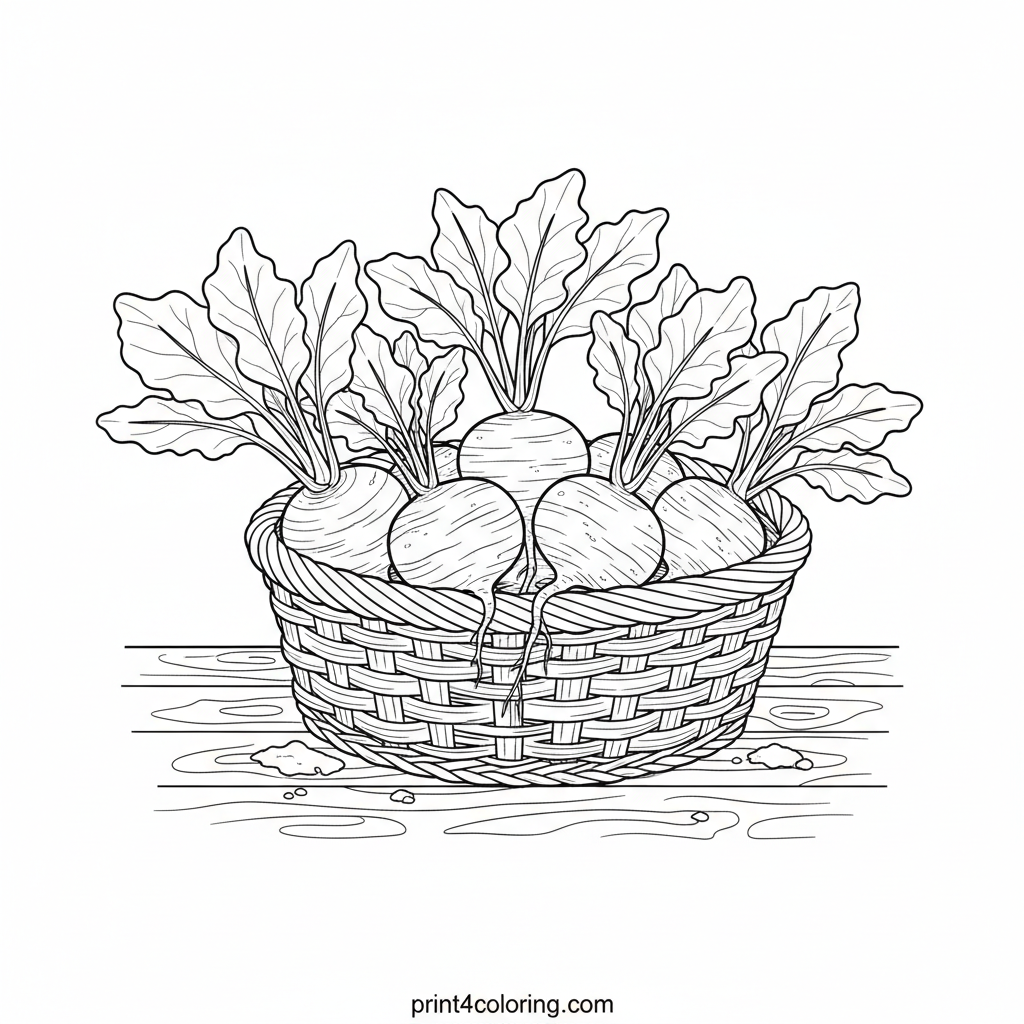 Harvest's Delight: Turnips in a Basket Coloring Page