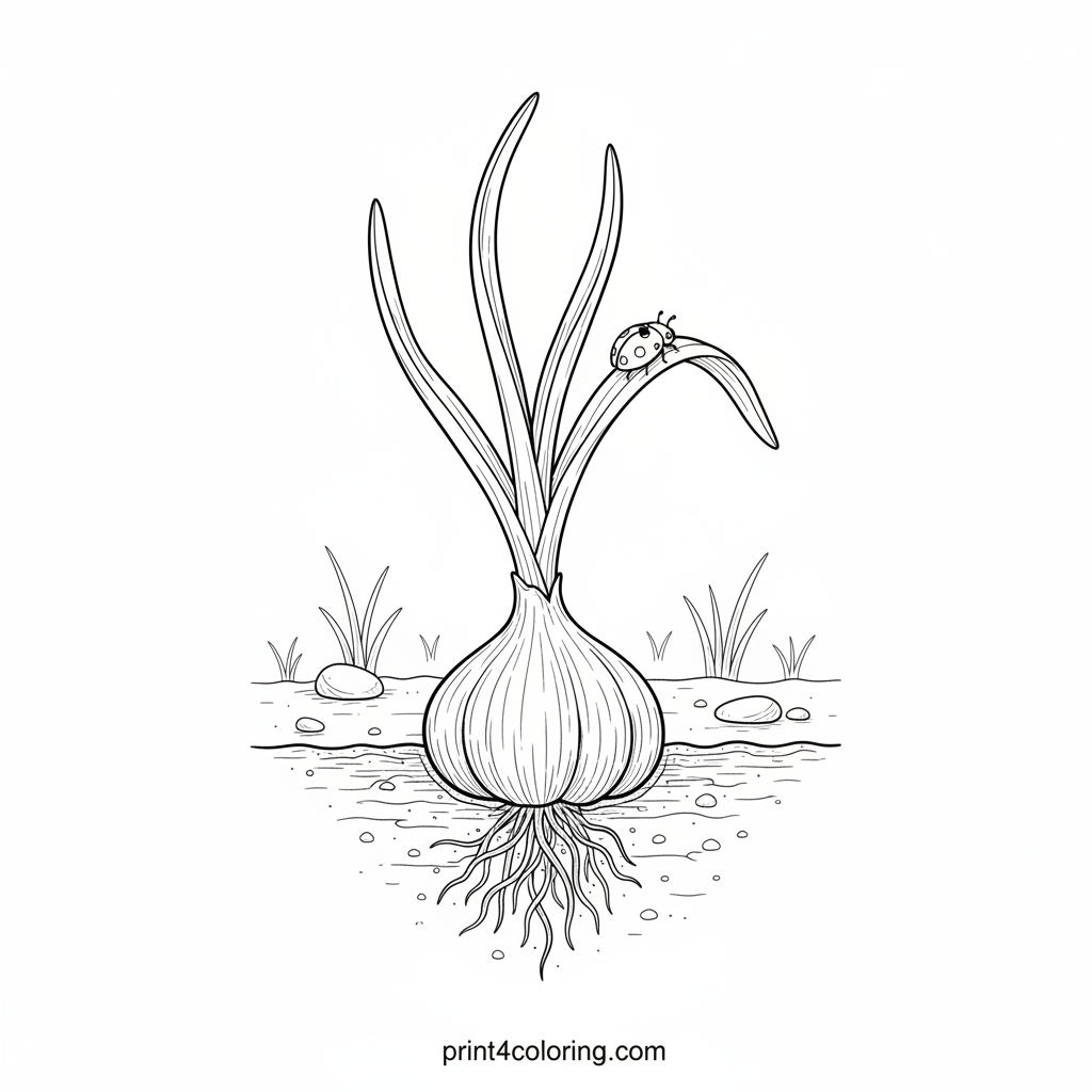 #garlic#plant#botanical#roots#ladybug#garden#nature#coloring-page#printable